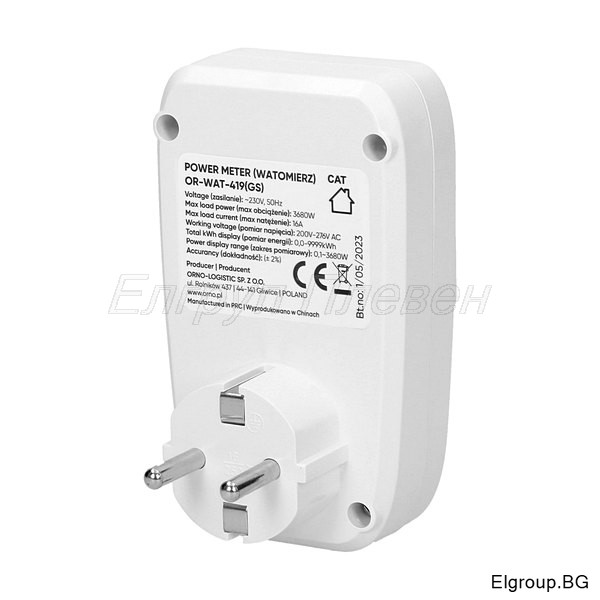 Измервател на електроенергия ORNO OR-WAT-419(GS) – енергиен измервател за анализ на консумацията на електрически уреди. Свързва се лесно между контакта и щепсела на уреда. Не изисква монтаж или специални настройки. Устройството разполага с голям LCD дисплей. Показва ясно всички измервани стойности. Позволява лесна конфигурация за изчисляване на разходите за електроенергия. ORNO OR-WAT-419(GS) е подходящ за домашна и офисна употреба. Използва се за контрол на разходите, сравнение на уреди и повишаване на енергийната ефективност. Подходящ е за компютри, домакински уреди и офис техника.
