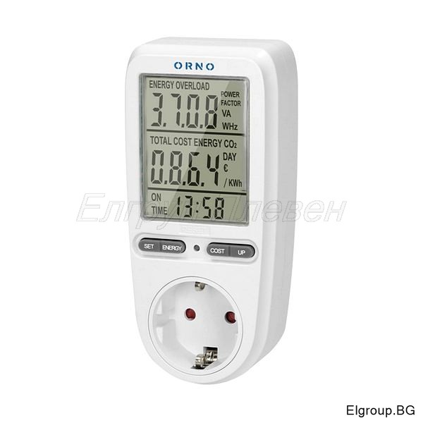 Измервател на електроенергия ORNO OR-WAT-435(GS) – уред за измерване и контрол на консумацията на електрически уреди. Позволява измерване на разхода на електроенергия и изчисляване на стойността на потребената енергия. Устройството разполага с голям LCD дисплей за лесно отчитане. Показва мощност, напрежение, ток и честота. Отчита и коефициент на мощността. Следи натрупаната консумация (kWh) и общата цена на електроенергията. Показва количество CO₂, време на работа по дни и цена за kWh (€/kWh). ORNO OR-WAT-435(GS) съхранява натрупано време на работа. Подходящ е за домашна и професионална употреба. Използва се за енергиен мониторинг, оптимизация на разходите и повишаване на енергийната ефективност.