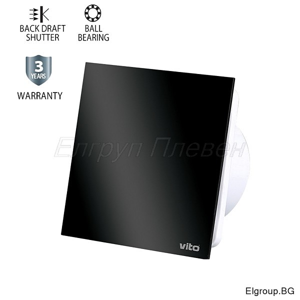 Черният Vito VENTI-GL100 е създаден за клиенти, които не правят компромис с естетиката. Благодарение на сачмените лагери, той работи плавно и стабилно години наред. Вентилатор за баня Ф100мм Vito 8005240 VENTI-GL100 – компактният му монтажен отвор от 100 mm го прави подходящ за масово използваните вентилационни системи в апартаменти и къщи.